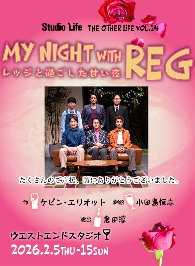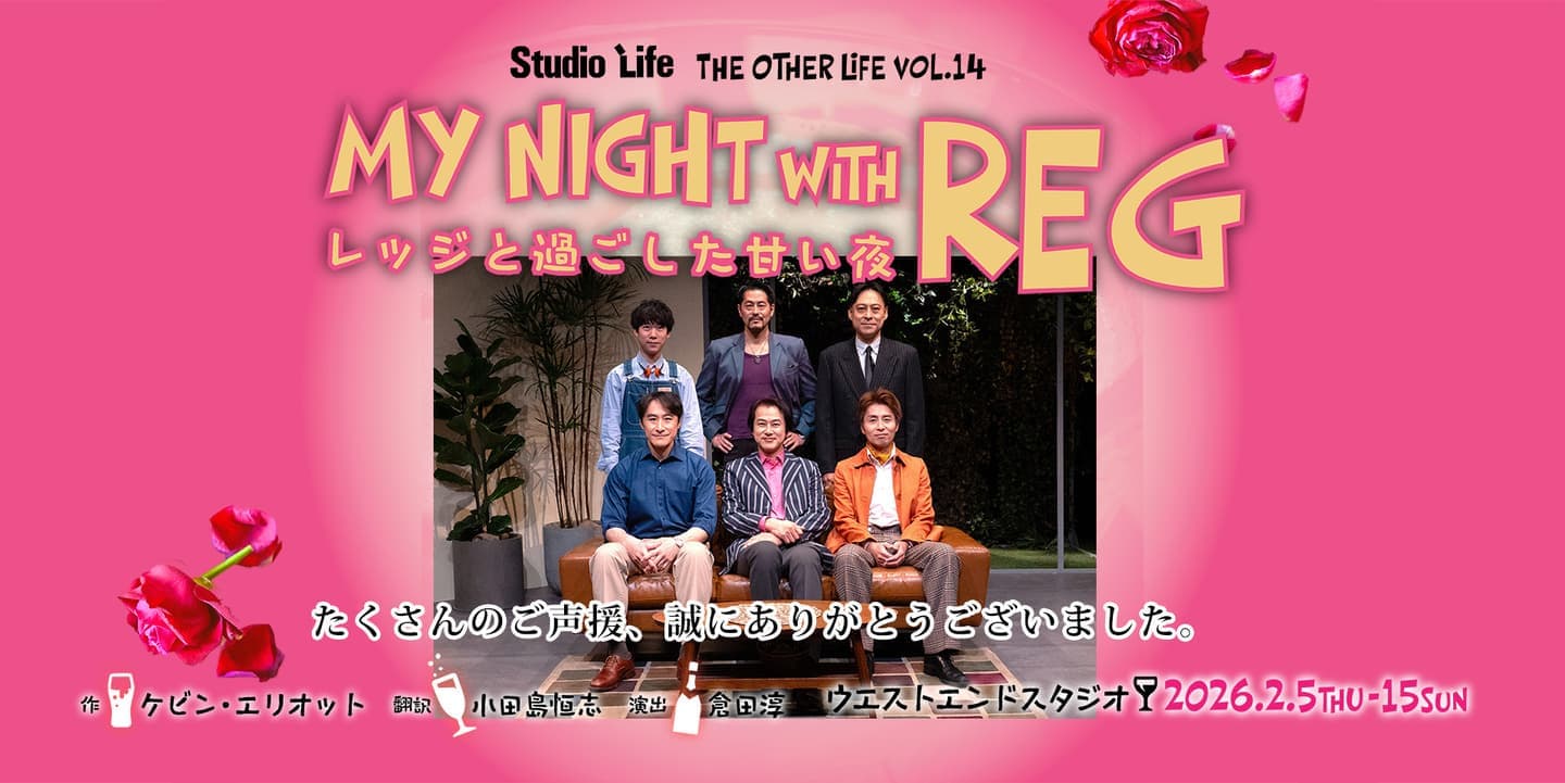 What's New 新着情報 2026.2.9 『My Night with Reg~レッジと過ごした甘い夜~』のイベント情報を更新しました。詳しくはこちら。 2026.2.5 『My Night with Reg~レッジと過ごした甘い夜~』のグッズ情報を更新しました。詳しくはこちら。 2026.1.28 『My Night with Reg~レッジと過ごした甘い夜~』を更新しました。詳しくはこちら。 Outside Performance 外部出演情報 2026.2.2 【舞台】甲斐政彦 詳しくはこちら 2026.1.28 【舞台】曽世海司 詳しくはこちら 2026.1.28 【LIVE】曽世海司 詳しくはこちら 2026.1.7 【舞台】鈴木翔音 詳しくはこちら 2025.12.21 【舞台】山本芳樹 詳しくはこちら 2025.12.14 【DVD】曽世海司 詳しくはこちら