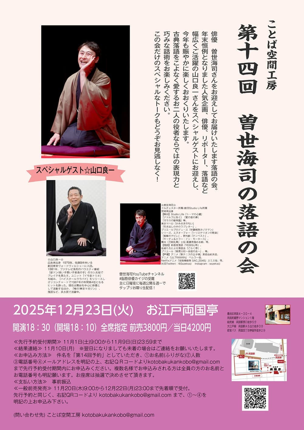 ことば空間工房さんにお呼ばれしておかげさまで第14回の落語の会です。